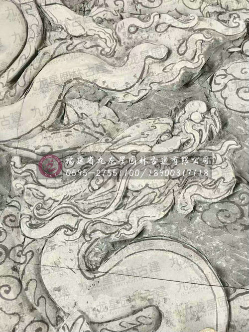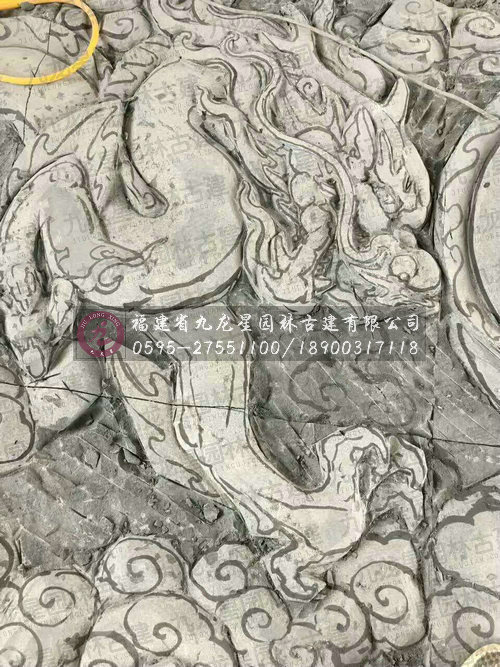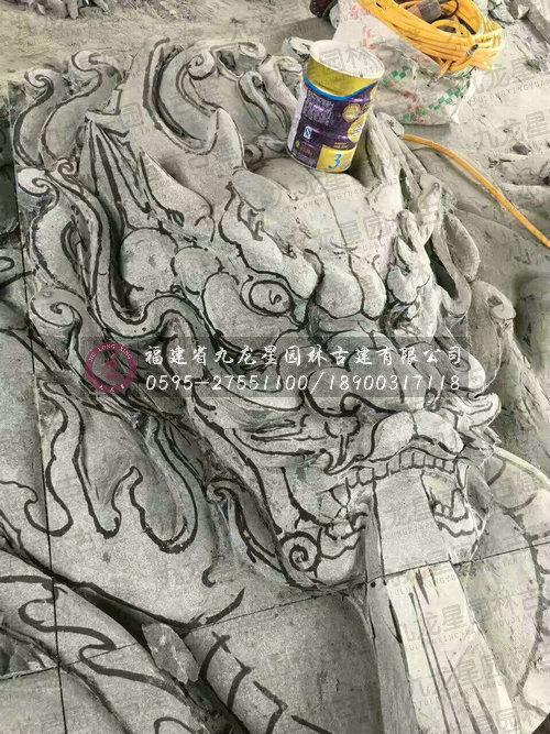 九龍星園林古建石雕九龍壁現場加工圖