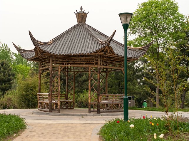 古代中國建筑是木結構體系的建筑,所以涼亭也大多是木結構的。木構的涼亭,以木構架琉璃瓦頂和木構黛瓦頂兩種形式最為常見。前者為皇家建筑和壇廟宗教建筑中所特有,富麗堂皇,色彩濃艷。而后者則是中國古典亭榭的主導,或質樸莊重,或典雅清逸,遍及大江南北,是中國古典涼亭的代表形式。