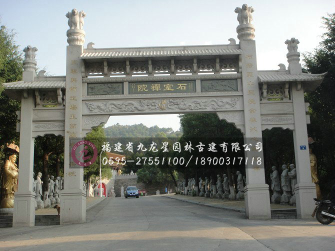 石雕牌坊即石頭修建的牌坊,是一種裝飾建筑物,也是雕刻藝術(shù)的一種。常見于古代陵園,如北京明代陵墓外面的大紅門前,有石牌坊一座,整個牌坊為五間六柱十一樓,結(jié)構(gòu)勻稱和諧,造型美觀大方。現(xiàn)代石牌坊常用于村鎮(zhèn)入口,寺廟景區(qū)入口等。主要作為標(biāo)志性的裝飾建筑物,在設(shè)計上也沒有古建石雕牌坊那么講究。