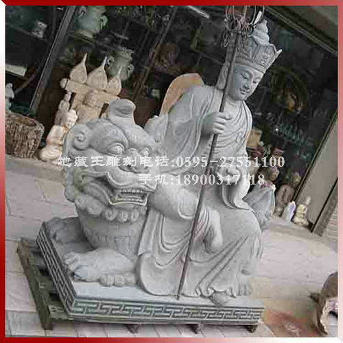 文殊菩薩:大智文殊菩薩右手高舉慧劍,寓意斬?cái)酂馈W笫殖稚?且蓮上通常還有經(jīng)卷