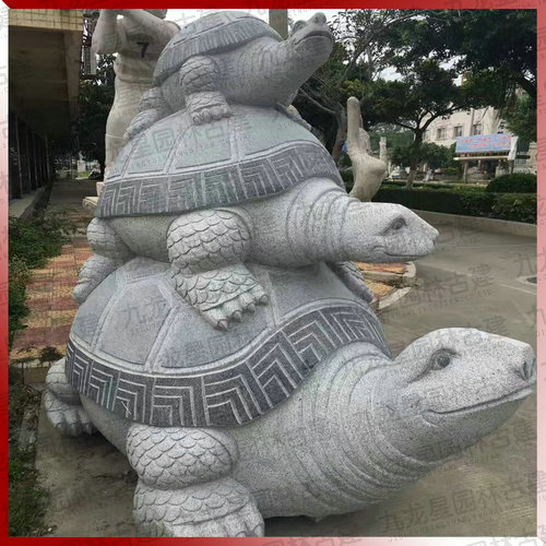 風(fēng)水化煞方面,一般人多數(shù)用威風(fēng)凜凜的獅子來鎮(zhèn)宅治邪,但有時也會因為環(huán)境不同,而用龜來化煞的。龜是屬于吉祥四靈「龍、鳳、龜、麟」之一,而且又是仁壽的象征,事宜擺在沖角的方向。龜采四海之靈氣,三龜成疊,下有雌雄騰地起,背架金龜觀四方。是祥和、平安的意思。