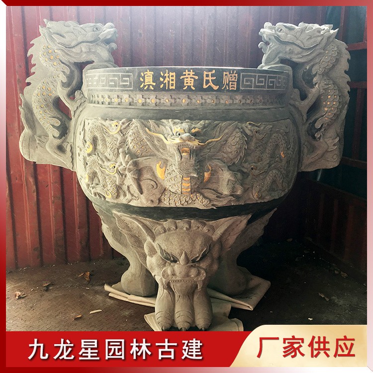 香爐石雕 圓形九龍石雕香爐發(fā)貨 祠堂祭祖用